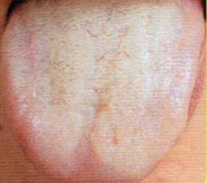 厚みのある状態で、胃腸系の障害があると変性細胞の脱落が不活発となり、これに雑菌などが増殖して口臭の原因となります。